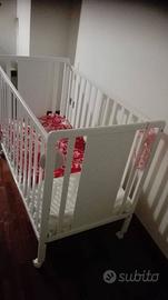 Vendo lettino per bebé ad altezza regolabile e con sponda abbassabile. Dimensioni: 90 cm (A) x 120 cm (L) x 65 cm (P) . Il fondo del lettino ha 2 altezze regolabili, e nelle foto è giù al massimo. Quindi il fondo può essere rialzato. La sponda si può tirare giù, come detto. Il letto è in ottime condizioni, ed è stato usato solo da 1 bebè. MAI AVUTO DANNI, QUINDI COME NUOVO.
