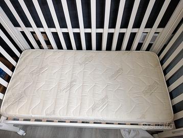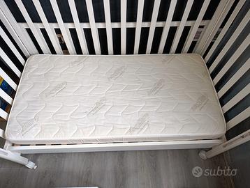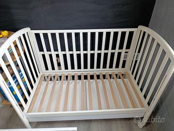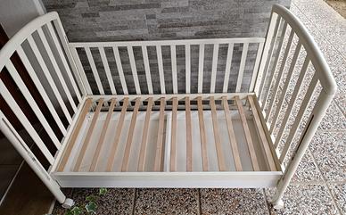 Vendo lettino per bimbi in legno colore bianco. Con 2 spondine laterali che si possono fissare alte, abbassare o togliere. Doghe in legno. In ottimo stato, vendo insieme al suo materasso e al coprimaterasso. Misure: lunghezza 133 cm larghezza 72 cm altezza massima del lato corto 103 cm altezza spondine 63 cm dalla rete