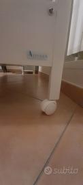 Lettino per bimbo 0-5 anni, in materiale legno, con cassetto sottostante, sponde ribassabili su entrambi i lati, coprisponde di protezione, materasso Aloe vera anti acaro, attualmente montato, (vedi foto), smonto per cliente interessato ad acquisto.