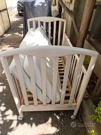 Il materasso è dotato di coprimaterasso amovibile completamente e velocemente poiché fissato con una zip per tutto il perimetro. 60x120 cm completo di 2 materassi come da foto.