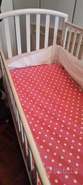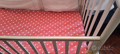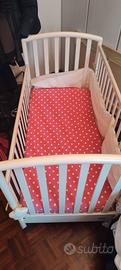 Vendo lettino per bimbo in legno massello colore bianco con sponde e base regolabili in altezza. Usato pochissimo, come nuovo, solido e stabile. Incluso nel prezzo anche il suo materasso! Rete e doghe in legno.