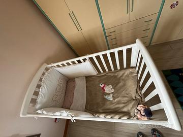 Lettino bianco dotato di una spondina regolabile in altezza e di un praticissimo cassetto estraibile nella parte inferiore, che potrà contenere tutti i corredini di ricambio. Facilissimo da spostare, grazie alle quattro ruote piroettanti, due delle quali sono dotate di freno. Materasso incluso