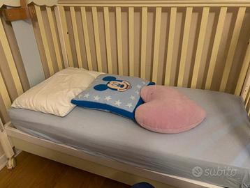 Lettino per bambini fino a tre/quattro anni, di ottima fattura, dotato di sponda abbassabile, cuscino, lenzuolino, piumino, due coppie di paracolpi laterali imbottiti, ampio cassetto al di sotto del materasso. Ottimo stato, come nuovo, pagato euro 650,00, vendo tutto completo a euro 130,00. Vero affare.