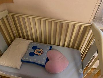 Lettino per bambini fino a tre/quattro anni, di ottima fattura, dotato di sponda abbassabile, cuscino, lenzuolino, piumino, due coppie di paracolpi laterali imbottiti, ampio cassetto al di sotto del materasso. Ottimo stato, come nuovo, pagato euro 650,00, vendo tutto completo a euro 130,00. Vero affare.