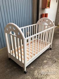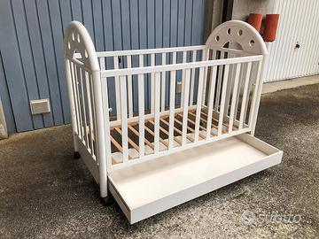 Lettino infanzia "Bellini" laccato bianco con cassettone e ruote.
