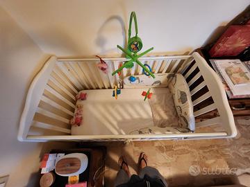 Vendo lettino Italbaby completo di paracolpi, materasso, telacerata, piumino e copripiumino. Compreso nel prezzo cedo seggiolone e box
