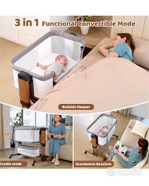 【Lettino Multifunzionale 3 in 1】Un versatile lettino che funge da fianco letto, culla a dondolo e lettino indipendente. Risparmia spazio e denaro offrendo flessibilità per varie esigenze.