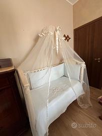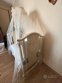 Lettino per neonati in buone condizioni; dotato di materasso, velo per culla, paracolpi, copriletto (inverno/estate) sia maschile che femminile. Per spedizione, spesa a carico dell'acquirente.