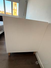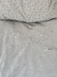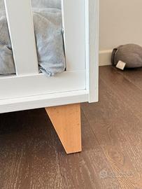 Letto in legno con sponde rimovibili. Completo di sacco, piumone, federa cuscino e paracolpi. Misure esterne 71x129