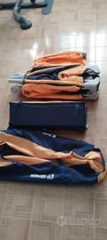 Vendo lettino da campeggio pieghevole della CAM, praticamente nuovo, usato poche volte, completo di capottina parasole e materassino supplementare oltre a quello in dotazione e custodia per il trasporto. Si chiude completamente con un ingombro simile ad un trolley da viaggio, munito anche di due ruote per un pratico trasporto.