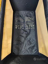 Vendo, come da foto, lettino pieghevole e portatile di colore blu, facile da aprire e chiudere, con base pieghevole ed imbottita con custodia originale per trasporto, ad € 45,00.