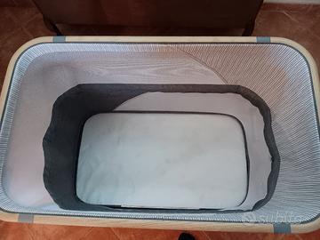 Lettino culla per neonati e primi mesi, altezza del materasso regolabile in altezza, dimensioni 71 altezza per 63 larghezza per 107 lunghezza. Pieghevole si chiude in pochi secondi, con custodia. Disponibile secondo materasso extra, antisoffocamento, con rivestimento in fibra di bamboo, al costo aggiuntivo di 25 Euro.
