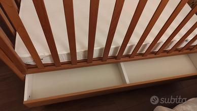 Vendo Lettino Prenatal Alice, completo di materasso ortopedico Aeroslip + topper anti soffocamento Aeroslip in ottime condizioni. Sponda laterale due altezze a scorrimento + cassetto estraibile. Provvisto di ruote per essere agevolmente spostato. In regalo paracolpi interni laterali. Misure interne Lunghezza 130 x Larghezza 70. Struttura alta circa 90 cm.