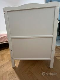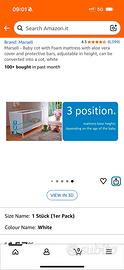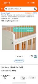 Marsell - Lettino per bambini con materasso in schiuma con rivestimento con aloe vera e sbarre protettive, regolabile in altezza, trasformabile in una culla, di colore bianco.