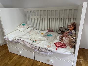 Lettino Ikea a due altezze,la sbarra si può togliere e diventa lettino basso fino ai 4 anni. Completo di piumino e paracolpi nuovi! Lettino nuovo mai usato!