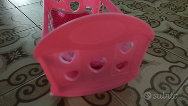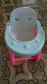 Vendo lettino lunghezza 25 cm e larghezza 15, seggiolone altezza 10 cm della seduta e altezza complessiva 23 cm per bambole piccole e vasino per Cicciobello, colore rosa, in plastica dura, ottime condizioni, euro 5 l'uno.