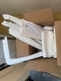 Lettino con parete a cerniera che gli permette di essere attacato al letto. Altezza 6 posizioni.