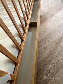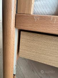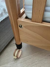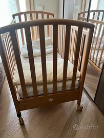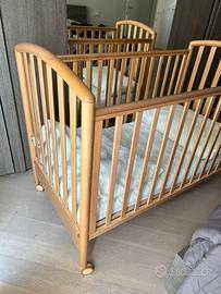 Pali lettino con sponde in legno naturale. Ruote che si possono frenare. Usato in ottimo stato. Cassetto porta oggetti. Materasso compatibile 60x120. Sponde laterali che si abbassano. E con copertura in plastica per i dentinidel bimbo Una delle Ruote ha preso una botta al momento del trasporto quando lo abbiamo acquistato , essendo ammaccata (non rotta) abbiamo messo un rinforzo di sicurezza