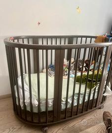 Vendo lettino Stokke Sleepi ovale con ruote, colore grigio/tortora, in perfette condizioni, completo di materasso.