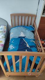 Vendo culla di legno in ottime condizioni, con cassetto sotto. Le spondine laterali si possono regolare in altezza o eliminare del tutto. Il materasso è nuovo. Regalo anche set di lenzuola, coprimaterasso impermeabile, paracolpi trapuntato e piumone invernale. Già smontato.