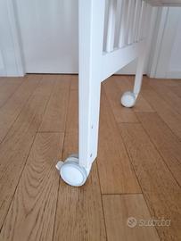 Culla/lettino con ruote per neonato, dimensioni 53x95cm, comprensiva di materasso con piumino e copripiumino, sponda abbassabile per accostarla al letto (next to me)