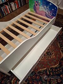 Lettino in ottime condizioni con cassettone e materasso lavato con vapore. Misure 140x70. Facile da montare con viti. Cassettone gia montato, scorre su 4 rotelline. Solo ritiro a mano.