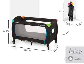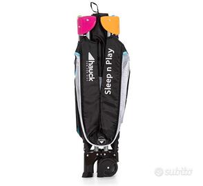 hauck Lettino Da Viaggio Sleep N Play Go Plus - Culla Neonato fino a 15kg - Letto Pieghevole 60x120cm - Box Bambini con Ruote, Apertura Laterale e Borsa - Nero, multicolore