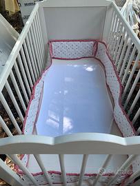 Lettino bianco in legno x bambini con materassino e paracolpi