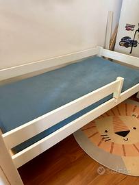 Letto in legno bianco, 80x160, con materasso come nuovo sfoderabile e lavabile