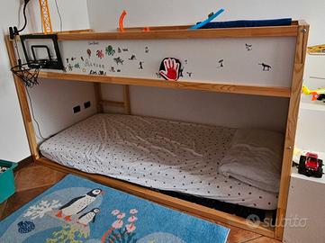 Letto reversibile kura + rete lonset ikea per fare il letto montessoriano + pavimentazione in perlinato removibile per creare un'area giochi al piano superiore.