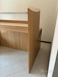 Letto a castello per bambini da appoggiare al muro con cassetti e cassettoni per la salita.