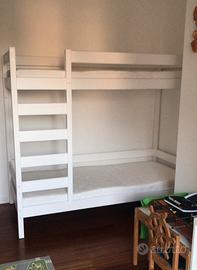 vendo letto a castello in legno completo di due materassi. Legno bianco. Misura materasso 180*80*12 cm Solo ritiro a Milano