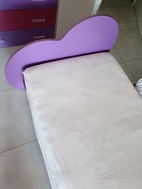Vendo letto ad una piazza colore viola. Fa parte di una camera per bambina che non vendo, possibilità di acquisto combinato al materasso aggiungendo 150€. Non spedisco, eventualmente consegno con il furgone se a distanza ragionevole. Eventuale smontaggio e montaggio sono a carico dell'acquirente