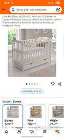 Vendo lettino in legno bianco, con sponde a bacchette di legno, rivestimento superiore ir PVC trasparente morbido. Il lettino ha la possibilità di avere entrambe le sponde alte oltre ad avere in aqgiunta la mezza sponda per quando il bambino diventa più grande oppure per affiancarlo al letto matrimoniale. Possibilità di regolare I altezza della doghe in base alla crescita del bambino. Dotato di comodissimo cassettone su quide. Usato pochissimo.