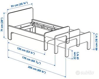 Struttura letto allungabile e doghe IKEA SLAKT, bianco, 80x200 cm. NO materasso Solo ritiro in zona