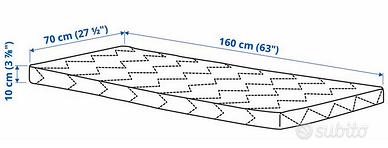 Struttura letto Ikea con base a doghe, bianco, 70x160 cm compreso di materasso sfoderabile e lavabile, ho a disposizione due lettini identici, vendo a 50 euro l'uno oppure 80 euro entrambi, nel prezzo è compreso; struttura letto, rete a doghe e materassino con copri materasso, ritiro solo in zona NON SPEDISCO.