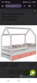 vendo letto bimba "casa" buon condizioni, in legno di pino naturale con materasso,le dimensioni sono mostrate nella foto.