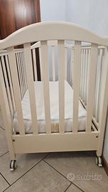 Vendo lettino per bambini 0–3 anni, in legno bianco laccato, con sponde regolabili,contenitore integrato e ruote con freni per spostarlo facilmente.