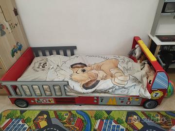 Vendo per inutilizzo, letto bimbo camion dei pompieri compreso di materasso nuovo, usato poco. Il letto misura 151x73x53 invece il materasso è 140x70