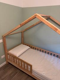 Vendo letto montessoriano Mon Lit Cabane in legno naturale con doghe e paracadute.