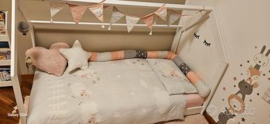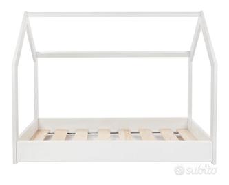 Letto a casetta in legno bianco con rete a doghe. Possibilità di acquisto con materasso (mai utilizzato) 90x190 di cui è possibile fornire scheda tecnica (+190,00).