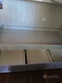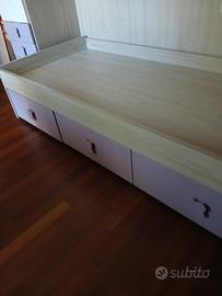 Letto singolo con tre comodi cassetti spaziosi e ruote nascoste per spostarlo con facilità