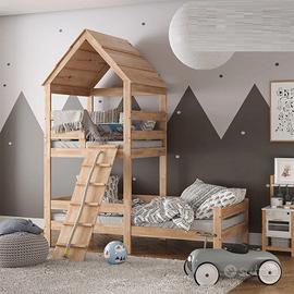 letto con casetta, completamente in legno.