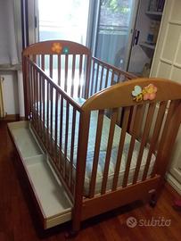 Letto in legno "azur loppiano" con sponde e cassetto, trasformabile in lettino normale quando il bimbo è più grande. Mai utilizzato, in perfette condizioni. Visionabile su appuntamento.