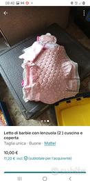 Letto di barbie con lenzuola (2 ) cuscino e coperta e piccola sorpresa