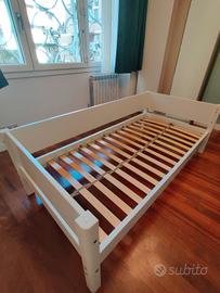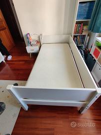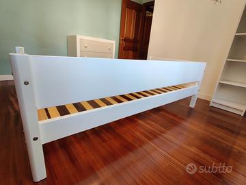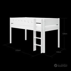 Vendo letto Flexa sopraelevato bianco. Misure come in foto. Completo di materasso e scaletta verticale. No sponda (acquistabile separatamente su sito o usata). Buono stato. No spedizione, ritiro in loco a Roma zona Tor Marancia. Fino al prossimo weekend, il letto sarà ancora montato.