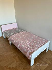 Vendo lettino Ikea bianco con testiera rosa. Modello estensibile intre taglie: 135, 170 e 200 cm. Compreso materasso a molle e spugna suddviso in tre pezzi e interamente sfoderabile.
