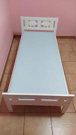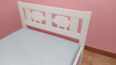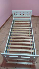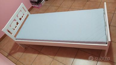 Vendo struttura letto con doghe in legno lunghezza 160 cm completo di materasso in schiuma Underlig, due spondine Vikare e un copripiumino.