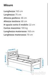 Letto ikea Kritter in ottime condizioni Misure specifiche in foto Materasso Non Ikea 70x160x13cm semi rigido in ottime condizioni Specifiche del materiale in foto Ritiro a Mano zona Roma sud