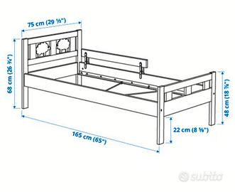 Vendo letto bianco per bambini, modello Kritter Ikea, con spondina. Completo di rete a doghe e materasso 160x70 cm. Il letto è già smontato.